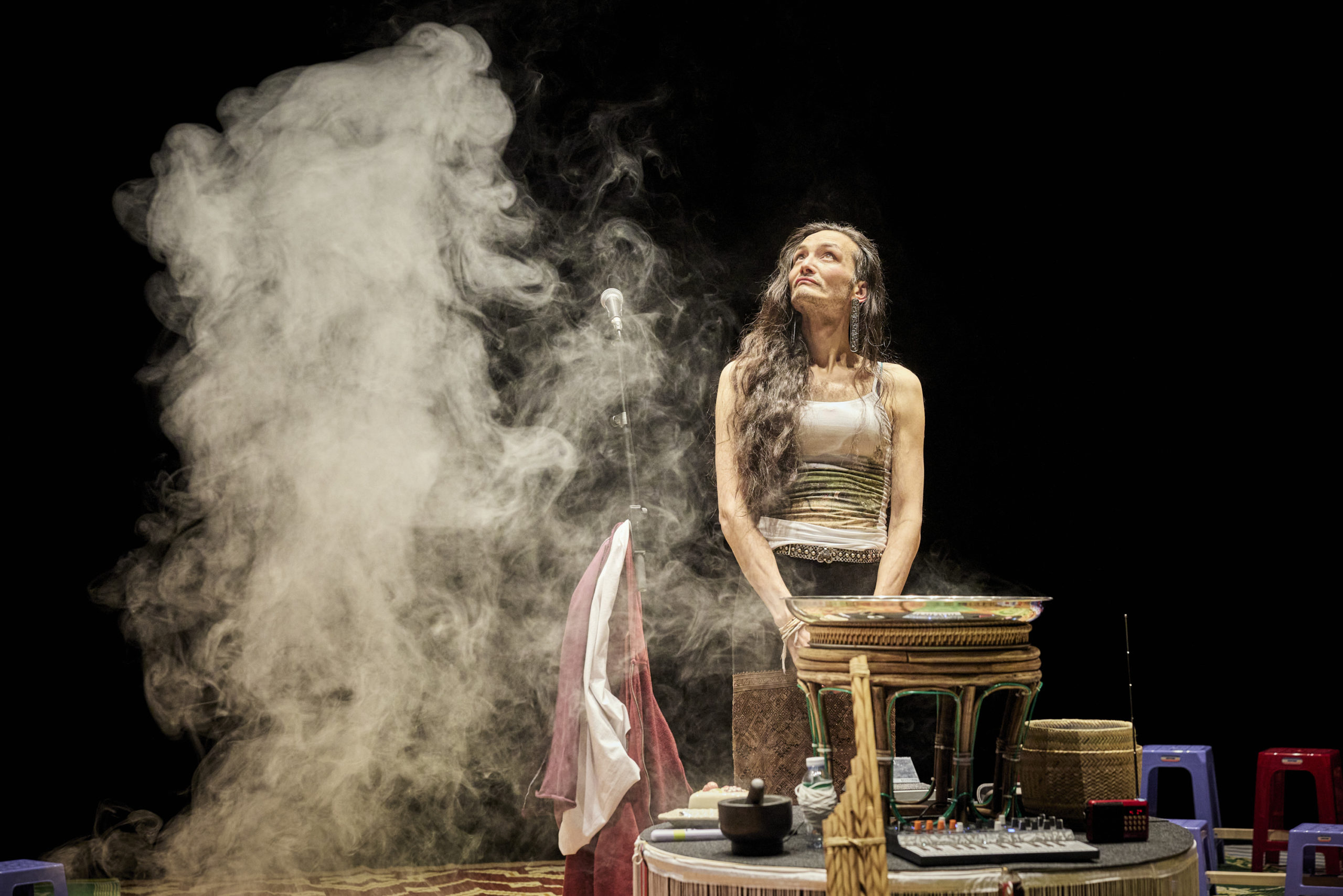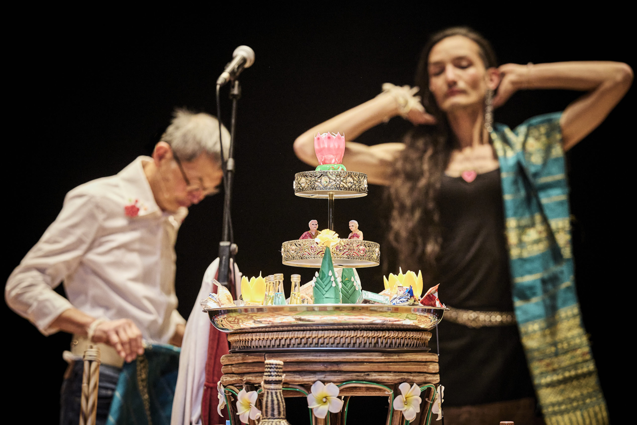 La dramaturge et performeuse Vanasay Khamphommala n’a jamais entendu la voix de sa grand-mère, décédée quelques jours après la naissance de son père. Sur scène, elle cherche à reconstruire le récit brusquement interrompu d’une vie presque anonyme, lointaine dans le temps et dans l’espace, dont les dernières traces sont en train de s’effacer. Accompagnée par son père, elle développe un espace acoustique où déployer un duo avec sa grand-mère paternelle. Au-delà de son histoire personnelle, c’est une exploration de nos mémoires individuelles et collectives qui se dessine : l’écologie de nos souvenirs, l’impact de la migration sur la transmission de nos histoires. Ce que, d’une génération à l’autre, nous nous disons, ce que nous ne nous disons pas — et ce que nous nous disons sans nous le dire.