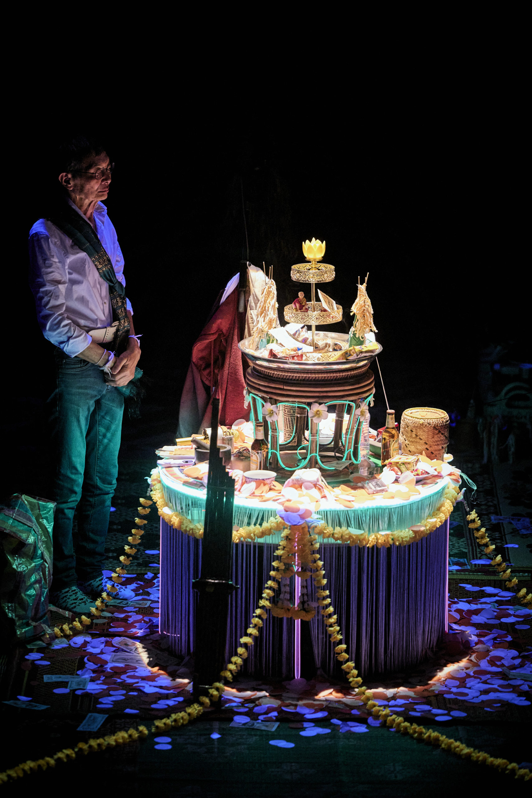 Dramaturgie et texte Vanasay Khamphommala Avec Somphet Khamphommala, Vanasay Khamphommala Voix Sieng In Bounmisay, Naly Lokhamsay, Daly Hiangsomboun Collaboration artistique Thomas Christin Création sonore Robin Meier Wiratunga Scénographie Kim lan Nguyên Thi Travail chorégraphique Olé Khamchanla Costumes Vanasay Khamphommala, Marion Montel Tissage Mai Bounmisay, Souksavanh Chanthavanh, Monkham Thongpanya Régie générale, son, plateau Maël Fusillier Création lumière, régie lumière, plateau Léa Dhieux Administration, production Kelly Angevine