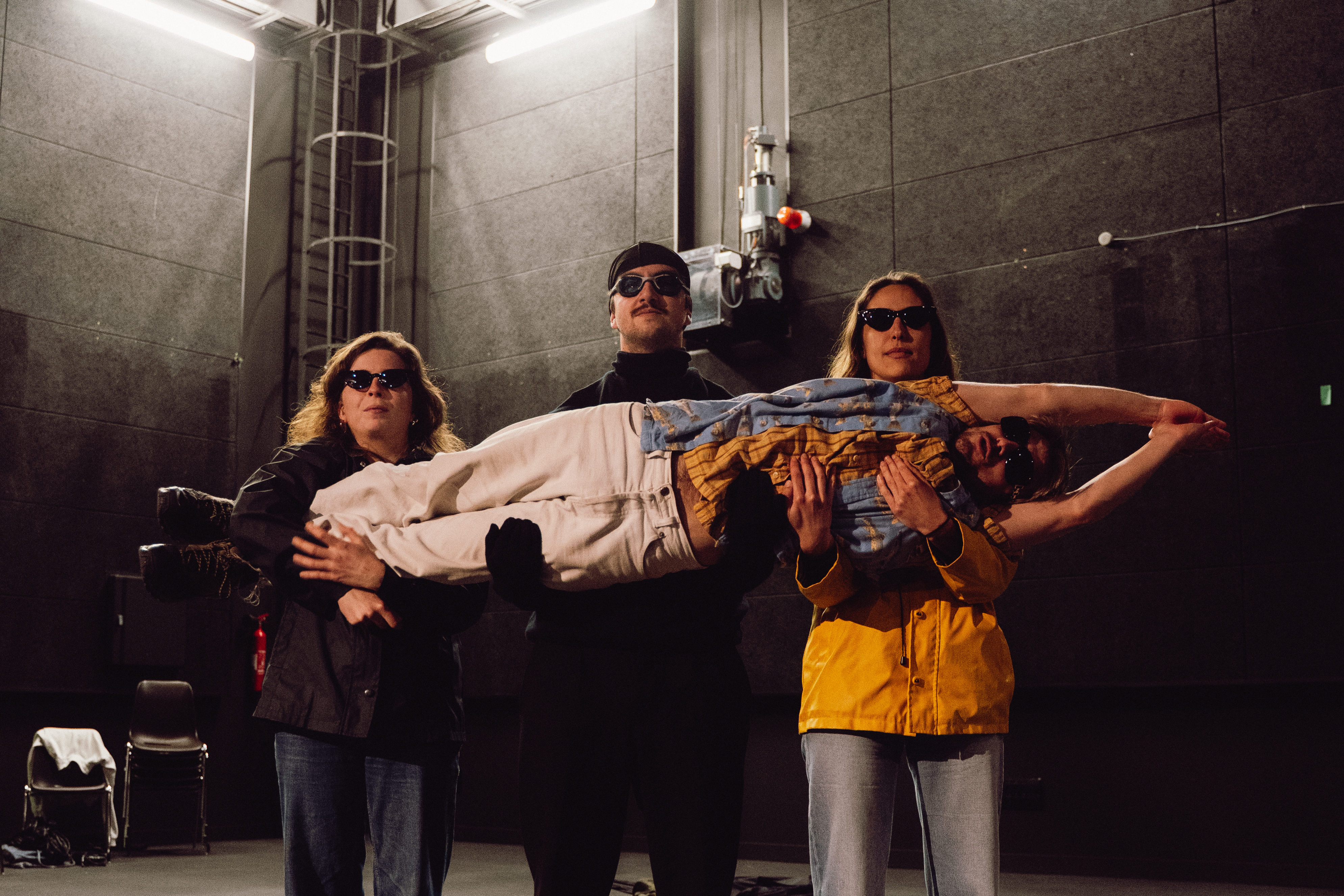 D’abord un cercle de parole, où l’intime affleure. Puis une pièce de boulevard poussiéreuse et grinçante, qui s’enraye peu à peu jusqu’à l’implosion. Et enfin, le vide : un espace suspendu, habité par d’étranges figures attendant le début d’un spectacle qui ne commencera jamais. Conçu comme une déambulation onirique, ce projet rend hommage à la fois au théâtre et à l’univers de David Lynch, plongeant peu à peu dans une quête de sens veine et absurde.