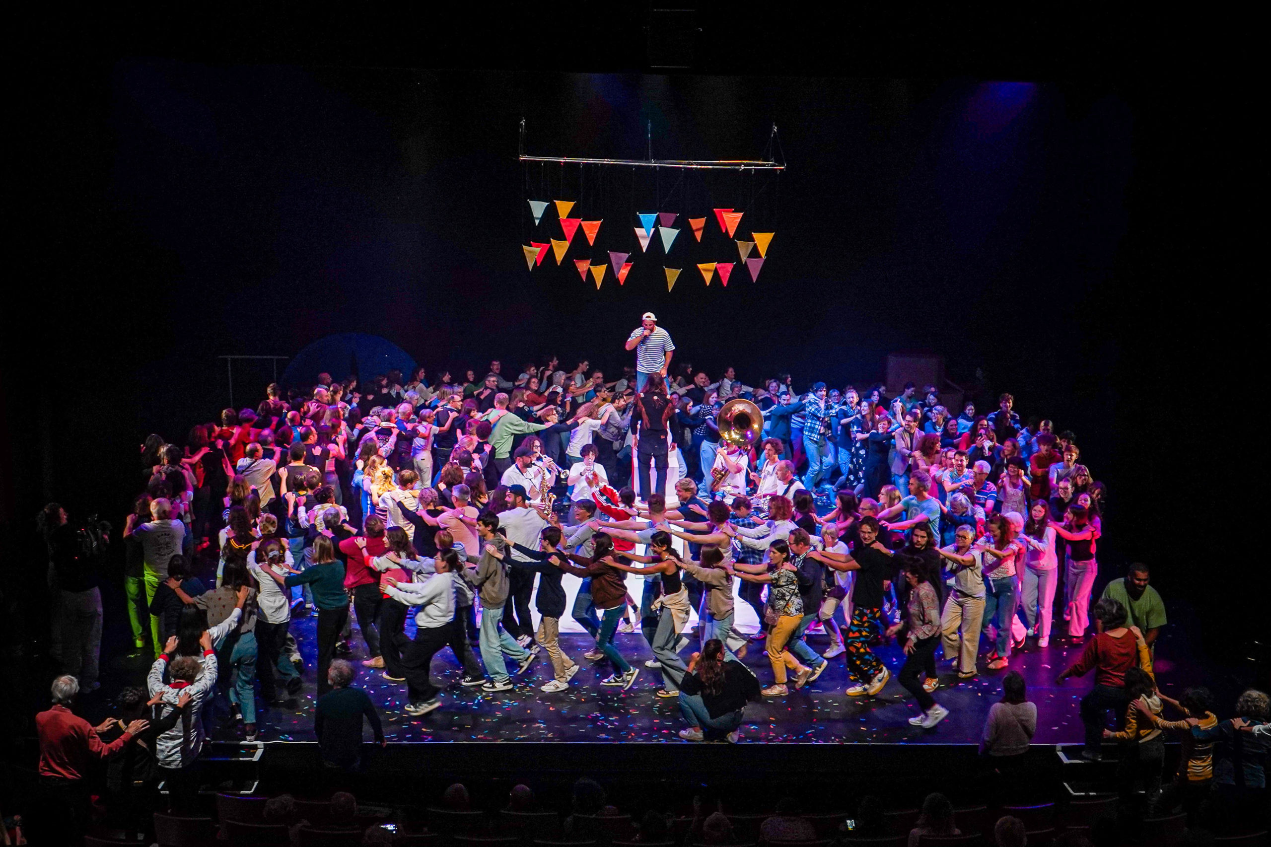 Réaliser une chenille toutes et tous ensemble un soir de représentation. Le projet est simple et pourtant ce rituel festif, en apparence anodin, est source de puissantes réactions : rejet, plaisir, euphorie. Pour certain·es, on touche même à la tradition.