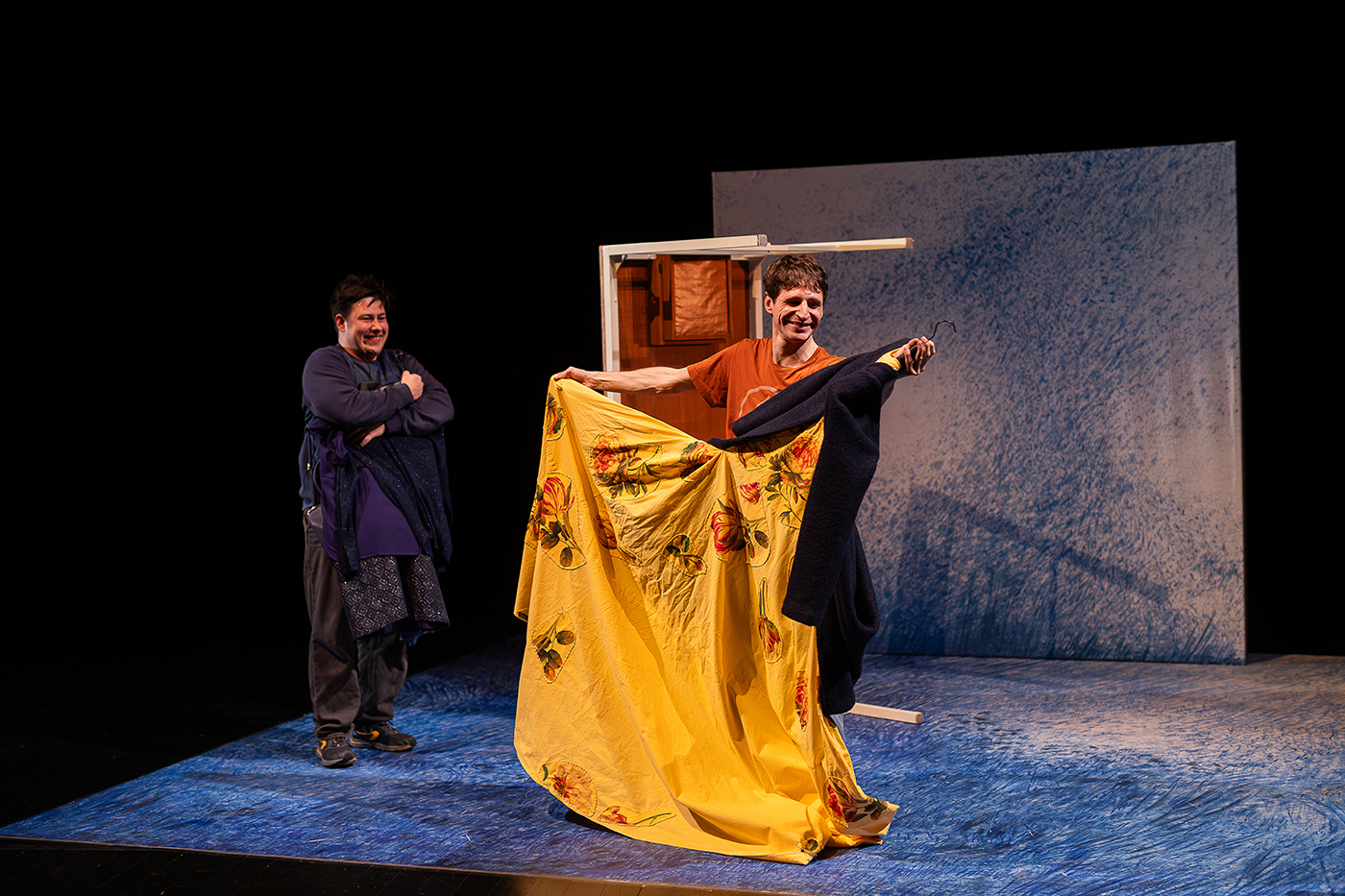 Les abîmés, ce sont Ludo et P’tit Lu, deux frères en proie à la violence de leur père. Ludo encaisse et protège son cadet, jusqu’au jour où P’tit Lu est placé en foyer et Ludo fugue. On suit l’histoire de ce duo fraternel avec émotion : la violence des routes qui se séparent, les rencontres qui réparent, les découvertes qui illuminent et redessinent un chemin de vie. La pièce aborde avec délicatesse un sujet difficile.