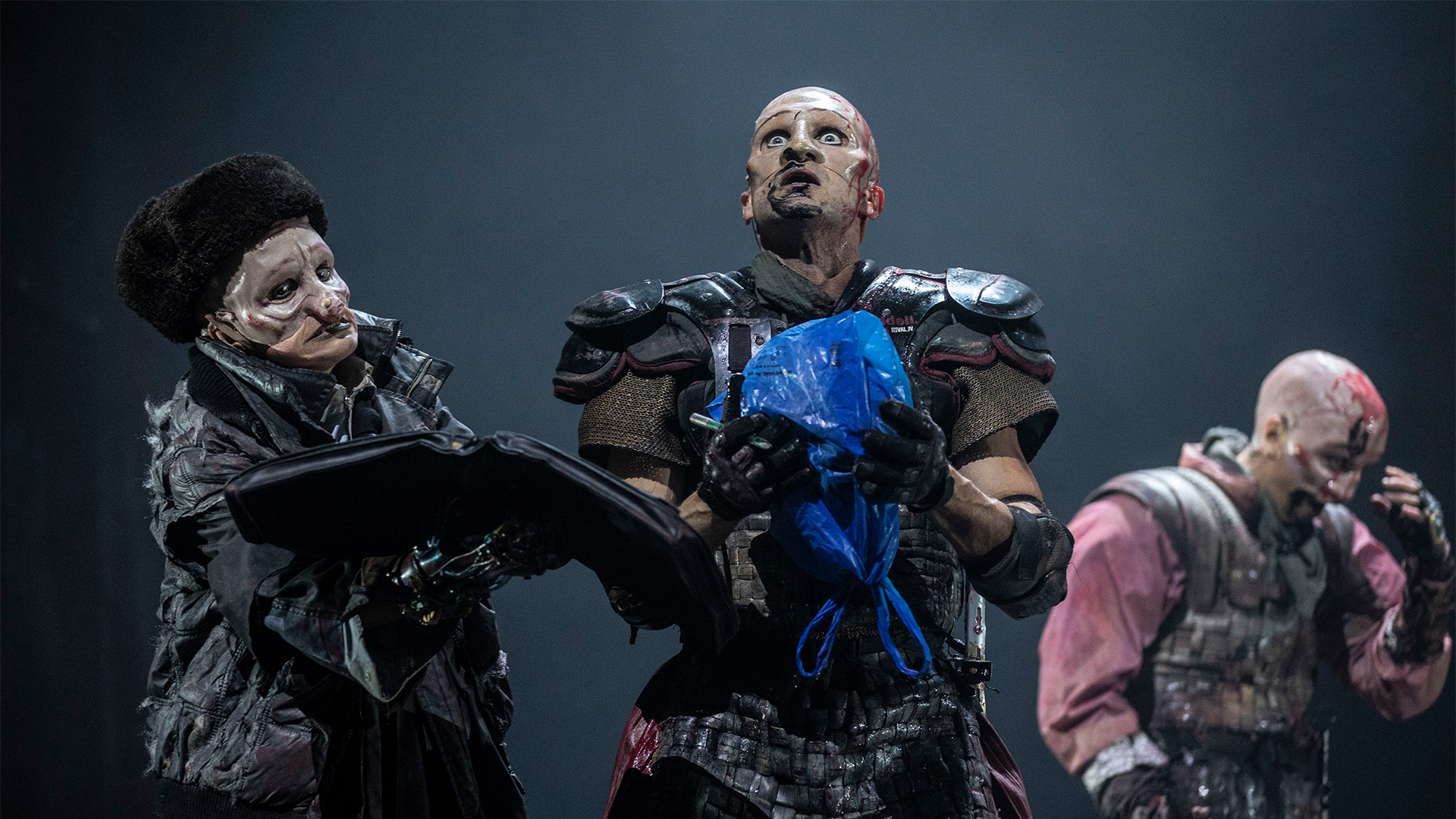 Toujours sur le fil entre humour noir et grand art, la compagnie s’attaque aujourd’hui à un classique de la tragédie : Macbeth. L’histoire est connue : pris d’une soif extrême de pouvoir et galvanisé par les prophéties d’étranges oracles, le couple Macbeth se lance dans une croisade meurtrière qui les fera sombrer dans la folie. Un récit violent pavé de guerres et de crimes qui fournit un terreau idéal aux mises en scène trash et organiques du Munstrum. Hémoglobine, substances noirâtres : ce Makbeth nouveau baigne dans des matières obscures et nous plonge dans une nuit sans fin où la langue shakespearienne résonne avec la terreur du présent. L’orgueil des puissants, la sauvagerie comme outil politique, mais aussi les prédictions trompeuses et la quête du bien qui dérape : les obsessions du théâtre élisabéthain ont décidément quelque chose de familier ! Le Munstrum pousse à son paroxysme cette correspondance dans une débauche scénique où se lit la part sombre de l’âme humaine. Un plaisir aussi plastique que lyrique.