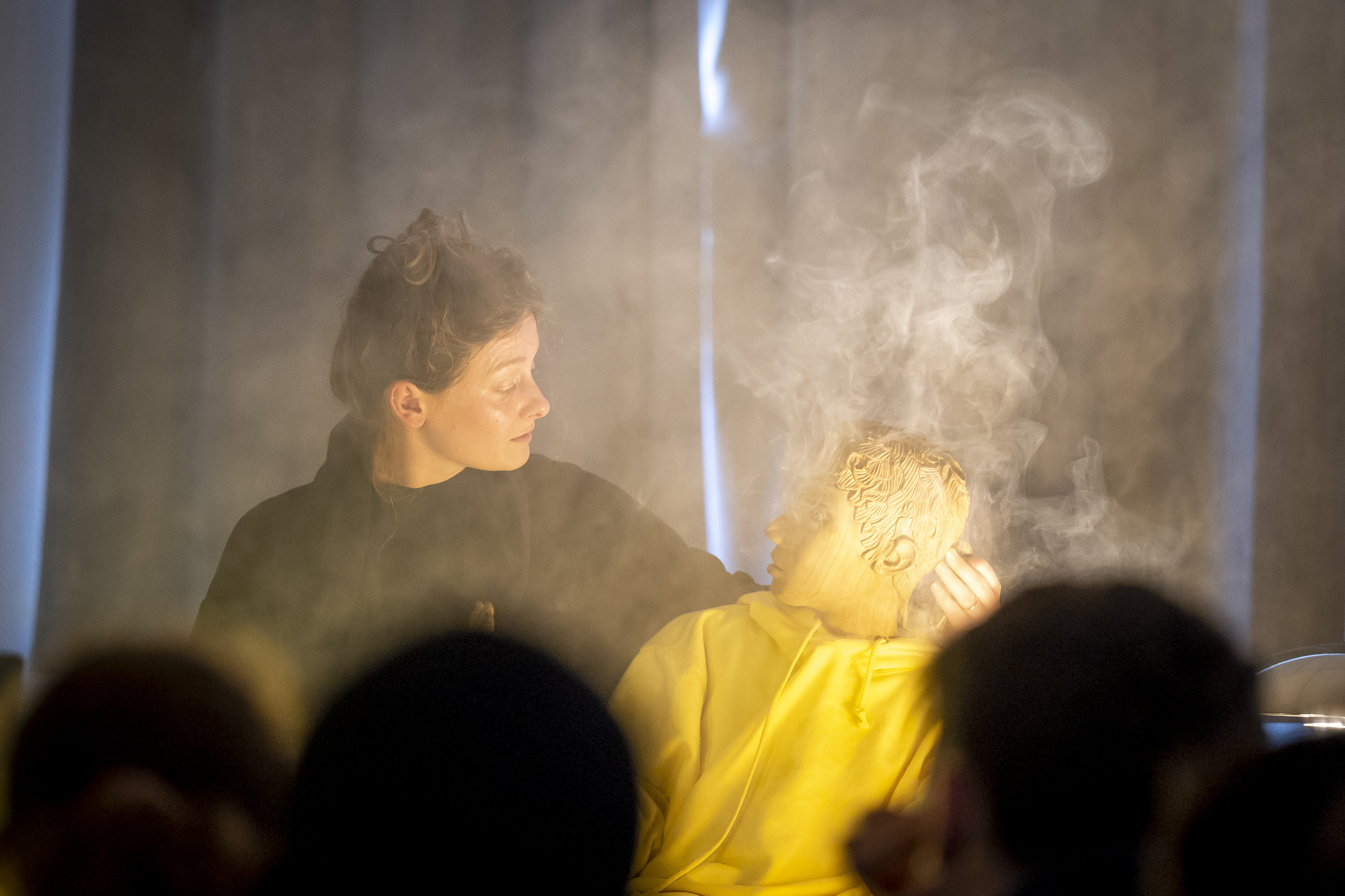Dans Transfiguration, sa pièce emblématique qu’il tourne depuis sa création, en 1998, dans le monde entier, il évoque l’incapacité d’un artiste de donner vie à son œuvre. Dans un geste désespéré, il se couvre de peinture d’argile pour devenir sculpture vivante. Se construisant par couches successives un autre visage, il se transforme devant nous. À la fois troublante et profondément émouvante, cette performance plastique renverse de façon spectaculaire l’existence d’un personnage, au départ employé de bureau sans histoire, qui devient un homme bestial en quête éperdue de sa vraie nature. Transfiguration ou l’art absolu de la métamorphose.