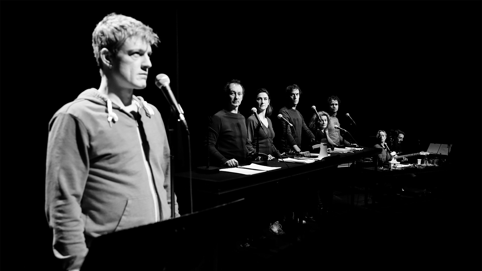 La pièce retrace l’épopée burlesque d’un homme ordinaire. Tout commence à la caisse d’un supermarché, lorsqu’un client se voit demander sa carte de fidélité. Il l’a oubliée dans un autre pantalon ; la caissière appelle le vigile, une altercation éclate. Dès lors, tout bascule : le personnage devient l’ennemi public numéro un et prend la fuite. Cet amour du grotesque, teinté d’un humour à la britannique, est le carburant de la compagnie L’Argument. Sur scène, la pièce prend la forme d’une fiction radiophonique, modulable et ouverte à l’imprévu. Inspirés par le style absurde et minimaliste de Fabcaro, les comédiens adoptent un jeu expressionniste, axé sur les postures et les décalages corporels. Passionnée par le son, la compagnie construit sa narration autour des bruitages, de la musique et du chant. À travers cette fuite surréaliste, c’est toute la mécanique d’une société en quête de boucs émissaires qui est passée au crible, entre parodie de film noir, pastiche médiatique et critique acerbe des dérives sécuritaires. Avec un humour burlesque assumé et une ironie mordante, la pièce dresse un portrait férocement drôle de nos obsessions contemporaines.
